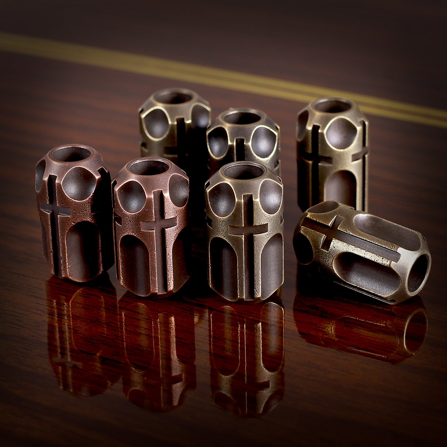 Our EDC Beads are machined in house from solid copper and brass. with an antique finish. Accent a lanyard on your favorite knife, flashlight, key ring, zipper pull, multi tool, tote bag, purse and more.